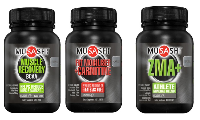 From $24.95 for a Three-Pack of Musashi Capsules: Muscle Recovery BCAA, Fat Metaboliser or ZMA+ (Don’t Pay up to $89.85)